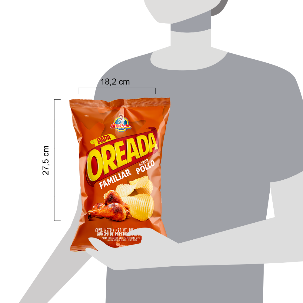 Papas seleccionadas, con sabor a pollo, textura ondulada.