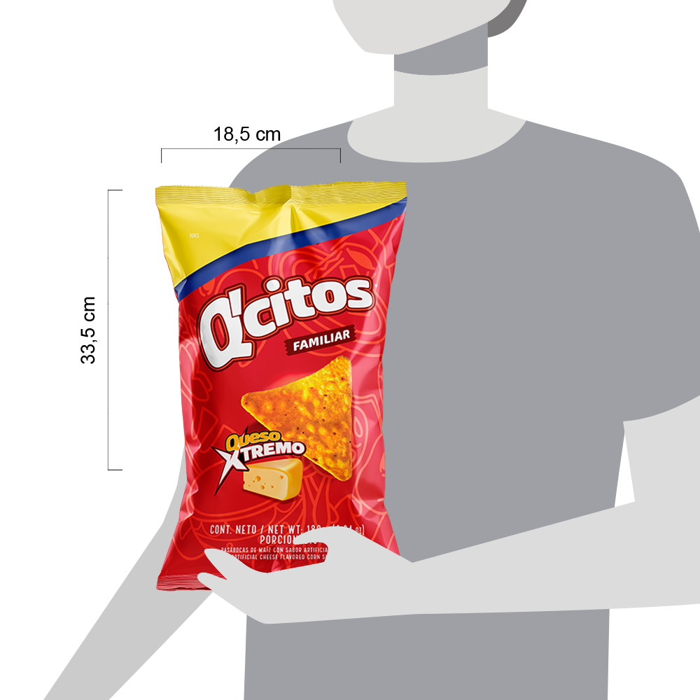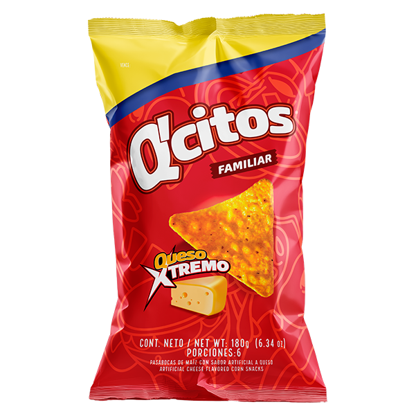 Maíz, Mezcla de aceites vegetales [Palma y/o sus fracciones, y/o girasol, y/o canola, y/o soya] y Sabor artificial a queso [Suero en polvo, Aceite de palma, Maltodextrina, Sal, Sólidos de la leche, Sólidos de jarabe de maíz, Queso (Leche pasteurizada, Sal, Cultivos lácteos, Enzimas), Saborizantes naturales y artificiales, Acentuador del sabor (Glutamato monosódico), Colorante natural (Cúrcuma), Antiaglutinante (Dióxido de silicio), Colorantes artificiales (Amarillo No.6 (Amarillo Ocaso FCF), Rojo No.40 (Rojo Allura AC), Amarillo No.5 (Tartrazina)), Antioxidante (TBHQ) y Acidulante (Ácido cítrico)].