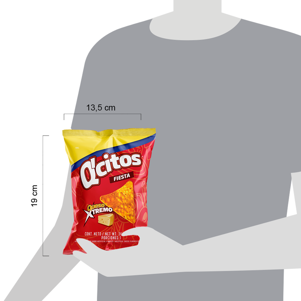Maíz, Mezcla de aceites vegetales [Palma y/o sus fracciones, y/o girasol, y/o canola, y/o soya] y Sabor artificial a queso [Suero en polvo, Aceite de palma, Maltodextrina, Sal, Sólidos de la leche, Sólidos de jarabe de maíz, Queso (Leche pasteurizada, Sal, Cultivos lácteos, Enzimas), Saborizantes naturales y artificiales, Acentuador del sabor (Glutamato monosódico), Colorante natural (Cúrcuma), Antiaglutinante (Dióxido de silicio), Colorantes artificiales (Amarillo No.6 (Amarillo Ocaso FCF), Rojo No.40 (Rojo Allura AC), Amarillo No.5 (Tartrazina)), Antioxidante (TBHQ) y Acidulante (Ácido cítrico)].