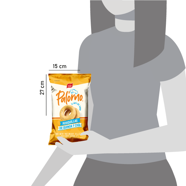 Almidón de yuca, almidón de maíz, grasa vegetal, queso (leche, sal, cuajo), queso (leche, sal, cuajo), chía, levadura, huevo, acentuador de sabor (cloruro de potasio), aroma natural y colorante idéntico al natural (betacaroteno).